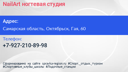NailArt, ногтевая студия по адресу Самарская область, Октябрьск, Гая, 60 в дальнейшем Организация, размещена в следующих категориях: