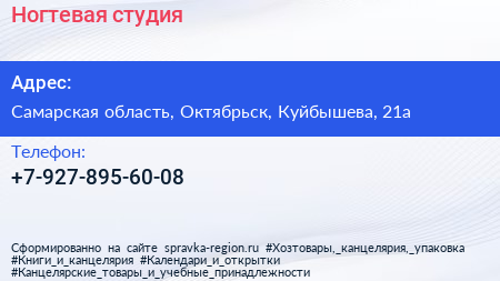 Ногтевая студия по адресу Самарская область, Октябрьск, Куйбышева, 21а в дальнейшем Организация, размещена в следующих категориях: