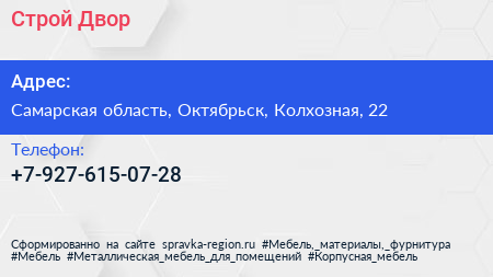Строй Двор по адресу Самарская область, Октябрьск, Колхозная, 22 в дальнейшем Организация, размещена в следующих категориях: