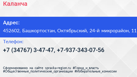 Каланча по адресу 452602, Башкортостан, Октябрьский, 24-й микрорайон, 11 в дальнейшем Организация, размещена в следующих категориях: