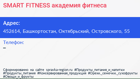 SMART FITNESS, академия фитнеса по адресу 452614, Башкортостан, Октябрьский, Островского, 55 в дальнейшем Организация, размещена в следующих категориях: