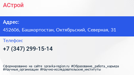 АСтрой по адресу 452606, Башкортостан, Октябрьский, Северная, 31 в дальнейшем Организация, размещена в следующих категориях: