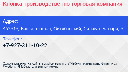 Кнопка, производственно-торговая компания по адресу 452616, Башкортостан, Октябрьский, Салават-Батыра, 6 в дальнейшем Организация, размещена в следующих категориях: