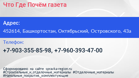 Что? Где? Почём?, газета по адресу 452614, Башкортостан, Октябрьский, Островского, 43а в дальнейшем Организация, размещена в следующих категориях: