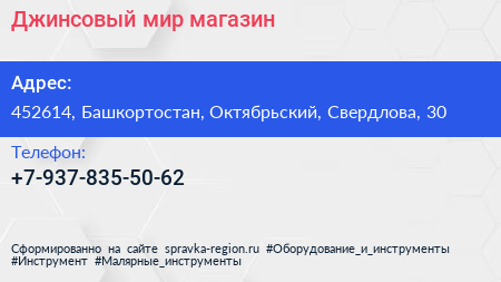 Джинсовый мир, магазин по адресу 452614, Башкортостан, Октябрьский, Свердлова, 30 в дальнейшем Организация, размещена в следующих категориях: