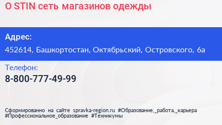 O`STIN, сеть магазинов одежды по адресу 452614, Башкортостан, Октябрьский, Островского, 6а в дальнейшем Организация, размещена в следующих категориях:
