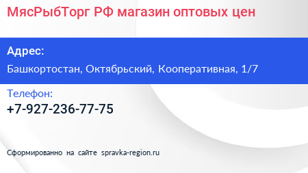 МясРыбТорг.РФ, магазин оптовых цен по адресу Башкортостан, Октябрьский, Кооперативная, 1/7 в дальнейшем Организация, размещена в следующих категориях: