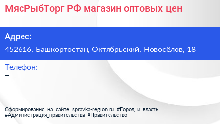 МясРыбТорг.РФ, магазин оптовых цен по адресу 452616, Башкортостан, Октябрьский, Новосёлов, 18 в дальнейшем Организация, размещена в следующих категориях: