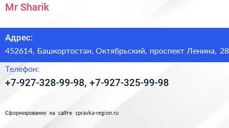 Mr.Sharik по адресу 452614, Башкортостан, Октябрьский, проспект Ленина, 28 в дальнейшем Организация, размещена в следующих категориях:
