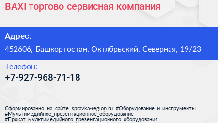 BAXI, торгово-сервисная компания по адресу 452606, Башкортостан, Октябрьский, Северная, 19/23 в дальнейшем Организация, размещена в следующих категориях: