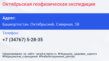 Октябрьская геофизическая экспедиция по адресу Башкортостан, Октябрьский, Северная, 58 в дальнейшем Организация, размещена в следующих категориях: