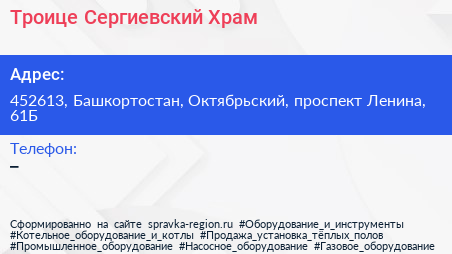 Троице-Сергиевский Храм по адресу 452613, Башкортостан, Октябрьский, проспект Ленина, 61Б в дальнейшем Организация, размещена в следующих категориях: