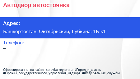 Автодвор, автостоянка по адресу Башкортостан, Октябрьский, Губкина, 1Б к1 в дальнейшем Организация, размещена в следующих категориях: