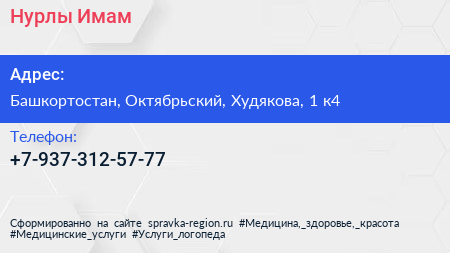 Нурлы Имам по адресу Башкортостан, Октябрьский, Худякова, 1 к4 в дальнейшем Организация, размещена в следующих категориях: