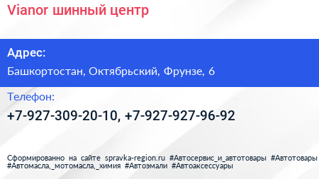 Vianor, шинный центр по адресу Башкортостан, Октябрьский, Фрунзе, 6 в дальнейшем Организация, размещена в следующих категориях: