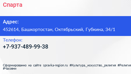 Спарта по адресу 452614, Башкортостан, Октябрьский, Губкина, 34/1 в дальнейшем Организация, размещена в следующих категориях: