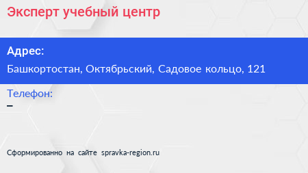 Эксперт, учебный центр по адресу Башкортостан, Октябрьский, Садовое кольцо, 121 в дальнейшем Организация, размещена в следующих категориях: