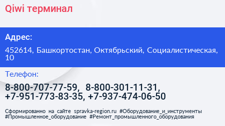 Qiwi, терминал по адресу 452614, Башкортостан, Октябрьский, Социалистическая, 10 в дальнейшем Организация, размещена в следующих категориях: