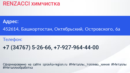 RENZACCI, химчистка по адресу 452614, Башкортостан, Октябрьский, Островского, 6а в дальнейшем Организация, размещена в следующих категориях: