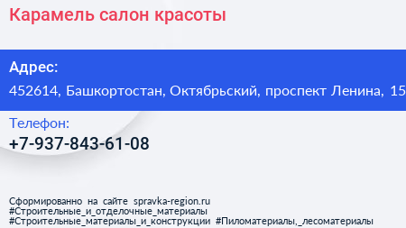 Карамель, салон красоты по адресу 452614, Башкортостан, Октябрьский, проспект Ленина, 15 в дальнейшем Организация, размещена в следующих категориях: