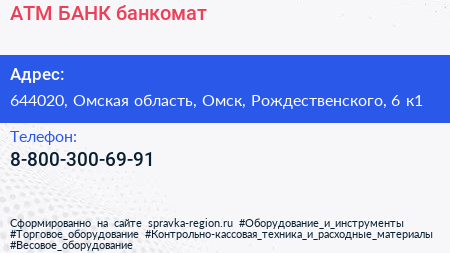 АТМ БАНК, банкомат по адресу 644020, Омская область, Омск, Рождественского, 6 к1 в дальнейшем Организация, размещена в следующих категориях: