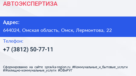АВТОЭКСПЕРТИЗА по адресу 644024, Омская область, Омск, Лермонтова, 22 в дальнейшем Организация, размещена в следующих категориях:
