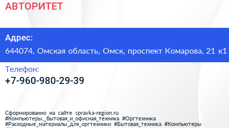 АВТОРИТЕТ по адресу 644074, Омская область, Омск, проспект Комарова, 21 к1 в дальнейшем Организация, размещена в следующих категориях: