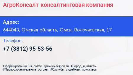 АгроКонсалт, консалтинговая компания по адресу 644043, Омская область, Омск, Волочаевская, 17 в дальнейшем Организация, размещена в следующих категориях: