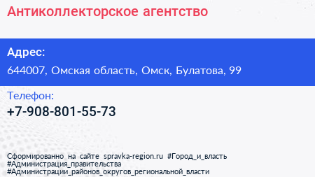 Антиколлекторское агентство по адресу 644007, Омская область, Омск, Булатова, 99 в дальнейшем Организация, размещена в следующих категориях: