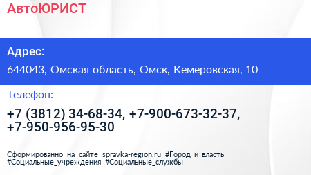 АвтоЮРИСТ по адресу 644043, Омская область, Омск, Кемеровская, 10 в дальнейшем Организация, размещена в следующих категориях: