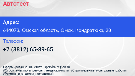 Автотест по адресу 644073, Омская область, Омск, Кондратюка, 28 в дальнейшем Организация, размещена в следующих категориях: