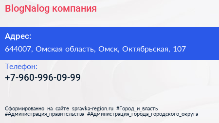 BlogNalog, компания по адресу 644007, Омская область, Омск, Октябрьская, 107 в дальнейшем Организация, размещена в следующих категориях: