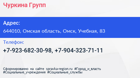 Чуркина Групп по адресу 644010, Омская область, Омск, Учебная, 83 в дальнейшем Организация, размещена в следующих категориях:
