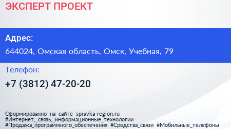 ЭКСПЕРТ ПРОЕКТ по адресу 644024, Омская область, Омск, Учебная, 79 в дальнейшем Организация, размещена в следующих категориях: