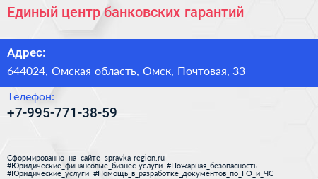 Единый центр банковских гарантий по адресу 644024, Омская область, Омск, Почтовая, 33 в дальнейшем Организация, размещена в следующих категориях: