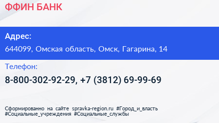 ФФИН БАНК по адресу 644099, Омская область, Омск, Гагарина, 14 в дальнейшем Организация, размещена в следующих категориях: