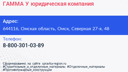 ГАММА-У, юридическая компания по адресу 644116, Омская область, Омск, Северная 27-я, 48 в дальнейшем Организация, размещена в следующих категориях: