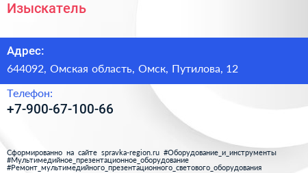 Изыскатель по адресу 644092, Омская область, Омск, Путилова, 12 в дальнейшем Организация, размещена в следующих категориях:
