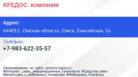 КРЕДОС+, компания по адресу 644011, Омская область, Омск, Енисейская, 1а в дальнейшем Организация, размещена в следующих категориях: