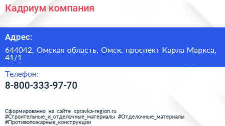 Кадриум, компания по адресу 644042, Омская область, Омск, проспект Карла Маркса, 41/1 в дальнейшем Организация, размещена в следующих категориях: