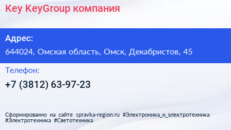 Key & KeyGroup, компания по адресу 644024, Омская область, Омск, Декабристов, 45 в дальнейшем Организация, размещена в следующих категориях: