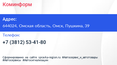 Коминформ по адресу 644024, Омская область, Омск, Пушкина, 39 в дальнейшем Организация, размещена в следующих категориях: