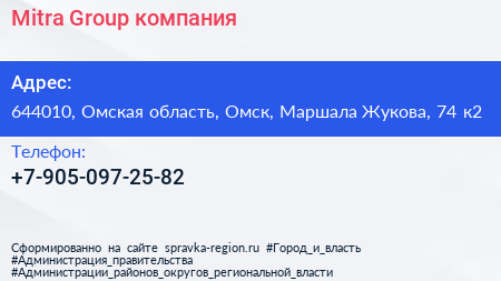 Mitra Group, компания по адресу 644010, Омская область, Омск, Маршала Жукова, 74 к2 в дальнейшем Организация, размещена в следующих категориях: