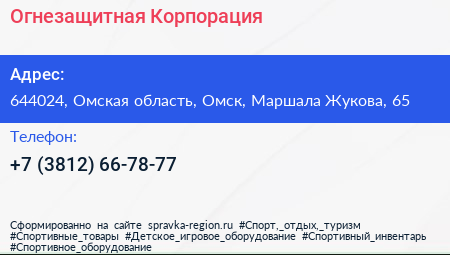 Огнезащитная Корпорация по адресу 644024, Омская область, Омск, Маршала Жукова, 65 в дальнейшем Организация, размещена в следующих категориях: