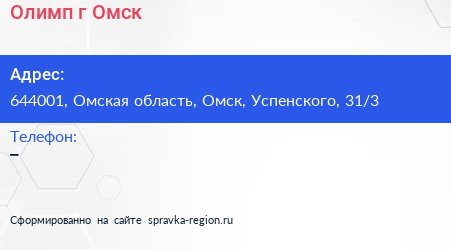 Олимп, г. Омск по адресу 644001, Омская область, Омск, Успенского, 31/3 в дальнейшем Организация, размещена в следующих категориях: