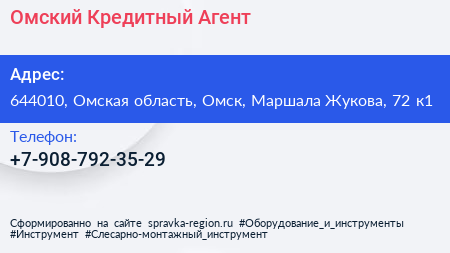 Омский Кредитный Агент по адресу 644010, Омская область, Омск, Маршала Жукова, 72 к1 в дальнейшем Организация, размещена в следующих категориях: