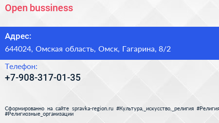 Open bussiness по адресу 644024, Омская область, Омск, Гагарина, 8/2 в дальнейшем Организация, размещена в следующих категориях: