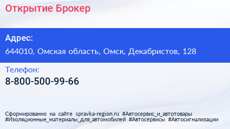 Открытие Брокер по адресу 644010, Омская область, Омск, Декабристов, 128 в дальнейшем Организация, размещена в следующих категориях: