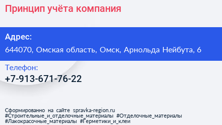 Принцип учёта, компания по адресу 644070, Омская область, Омск, Арнольда Нейбута, 6 в дальнейшем Организация, размещена в следующих категориях: