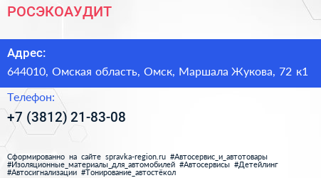 РОСЭКОАУДИТ по адресу 644010, Омская область, Омск, Маршала Жукова, 72 к1 в дальнейшем Организация, размещена в следующих категориях: